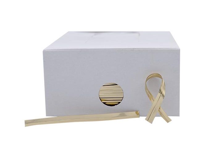Lien en plastique armé d'un fil de fer, coloris Or pour la fermeture de vos sachets de bonbons, croquants et autres gourmandises.