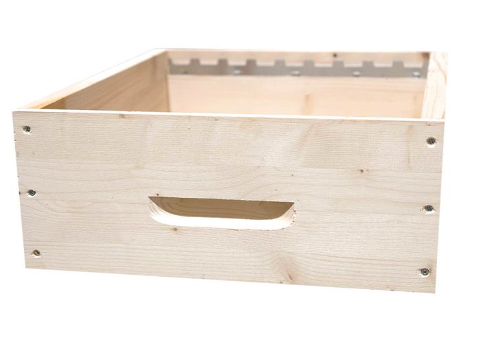 1 palette de 110 hausses Dadant 10 Beenature, en épicéa, assemblage mi-bois, équipées de crémaillères pour 9 cadres droits.