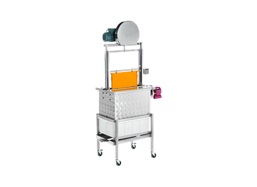 La machine à désoperculer FRITZ vous permet de désoperculer simultanément et rapidement les deux côtés de vos cadres grâce à ses lames rotatives. Elle présente de nombreux avantages ; elle peut notamment être utilisée pour tous types de cadres. Les lames rotatives retirent efficacement l'opercule des cadres sans en abîmer le bois. La cire operculée tombe dans un bac percé situé en dessous que vous pourrez retirer aisément. Aucun risque de perdre une goutte de miel, ce dernier s'écoulant dans le bac inox incliné du dessous jusqu'au robinet avec fermeture coupe-goutte. Voir plus.