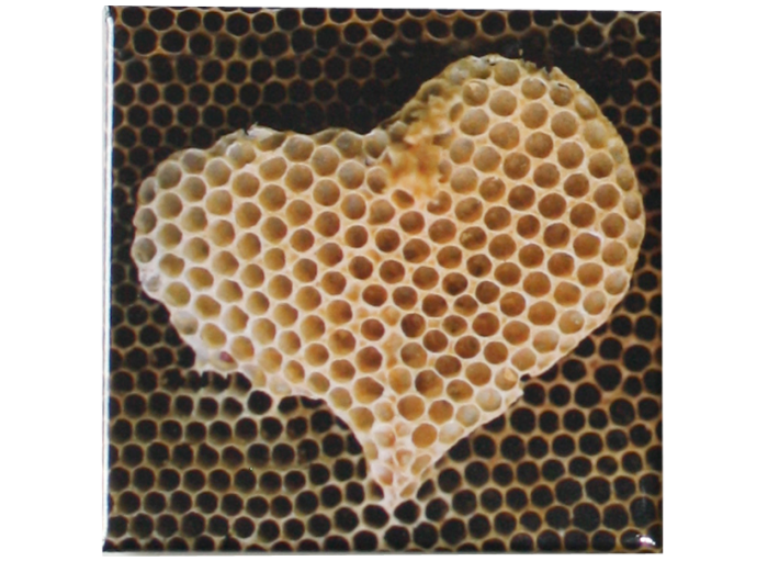 Les magnets sont idéaux pour accrocher votre liste de courses sur un tableau aimanté, le frigo de votre cuisine ou de votre miellerie. Le plus : la photo d'un coeur de cire naturellement fait par les abeilles apporte une touche déco poétique. Cette dernière, imprimée en haute qualité sur une coque métallique est glacée par un film plastique brillant.