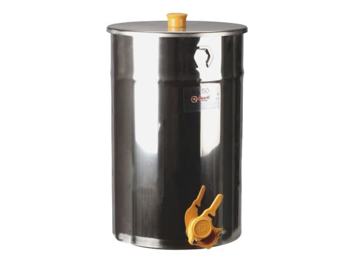 Maturateur 50 kg à fond plat en inox. Vendu avec couvercle. Son robinet jaune à clapet en nylon dont l’ouverture est de 40 de diamètre avec bague vis inox.