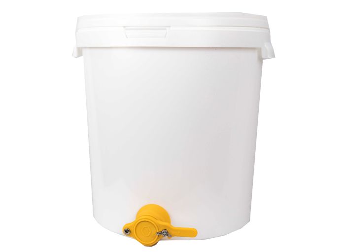 Maturateur 40 kg en plastique alimentaire pour environ 30L de miel. Vendu avec couvercle et anse. Son robinet jaune dont l’ouverture est de 40 cm de diamètre.