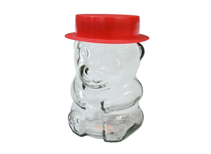 Pot en verre en forme d'ourson avec capsule twist-off TO58 et chapeau décoratif en plastique inclus