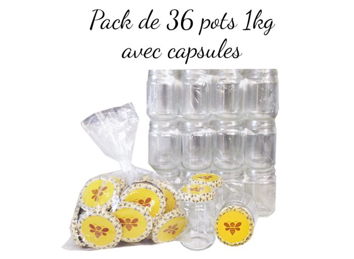 Pack de 36 pots en verre 1kg avec capsules "Essaim"