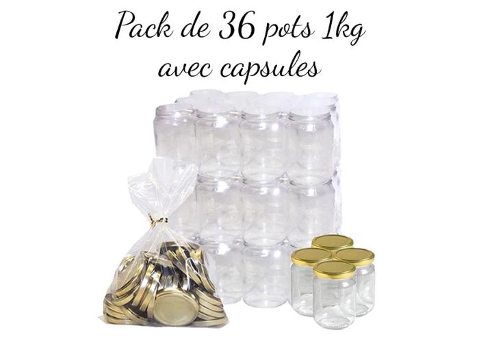 Pack de 36 pots en verre 1kg, avec capsules "or"