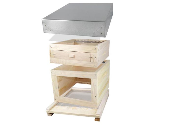 Corps Dadant 10 en épicéa, avec assemblage mi-bois. Équipé de 2 crémaillères pour 10 cadres droits et d'une bande intercadre. Belle finition, fabrication européenne. Une vitre en plexiglass vous pemet d'observer la vie des abeilles tout au long de l'année et de faire découvrir à vos amis et à votre famille la magie de l'apiculture.