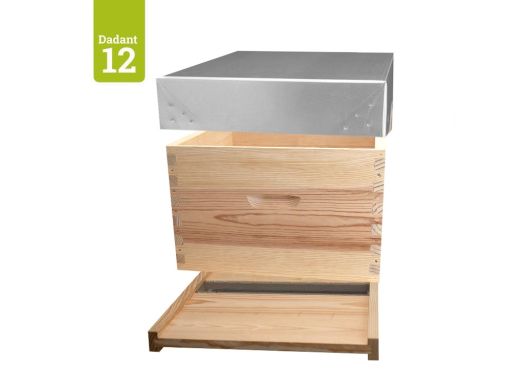 <p>Corps Dadant 12 en pin, avec assemblage à tenons. Équipé de 2 crémaillères pour 12 cadres droits et d'une bande intercadre. <span style="font-size: 0.9375rem;">Belle finition, fabrication européenne.</span></p>