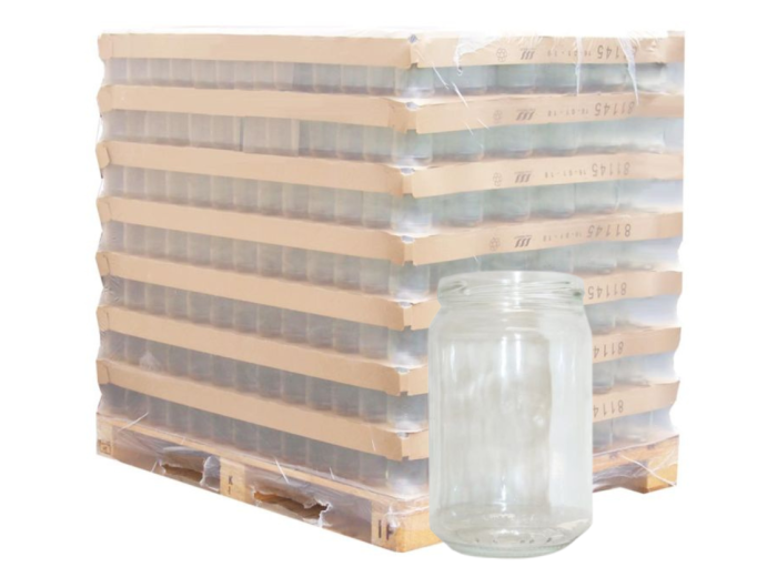 Palette de 2448 pots en verre 314 ml standard BRUNI, parfaits pour vos confitures, miels, crèmes, sauces, ou autres préparations artisanales.