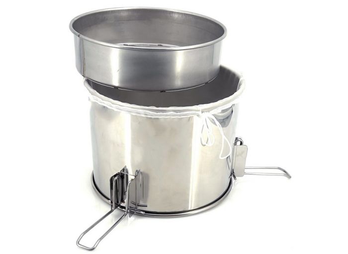 Ce tamis est un outil indispensable en miellerie, il vous permet de filtrer votre miel afin de le rendre propre à la consommation. Les grosses impuretés sont filtrées grâce à son grillage inox, et les plus fines particules sont quant à elles retenues dans le sac en nylon fourni avec le tamis.