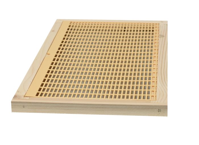 Il est constitué d'une grille à reine fixée sur la partie inférieur du plateau, et d'une plaque coulissante métallique sur le dessus. L'ouverture de la partie supérieur du système permet aux ouvrières d'accéder au corps sans perdre leur pelotes de pollen. Elle donne également un accès aux mâles.