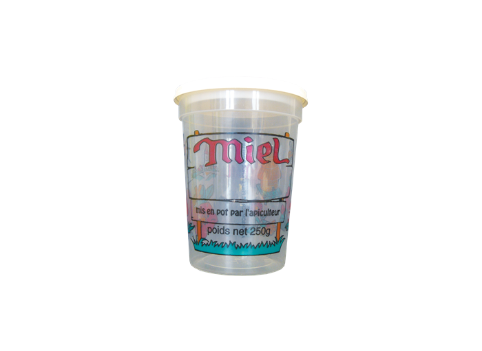 Pot plastique avec épaulement Nicot "4 couleurs" 190 ml (250 g miel), LE SACHET DE 25