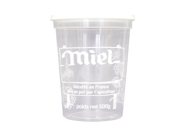 Informations : Contenance : 370 ml = env. 500 g de miel. Conditionnement : le sachet de 25 Diamètre pot : 88 mm Hauteur : 110 mm