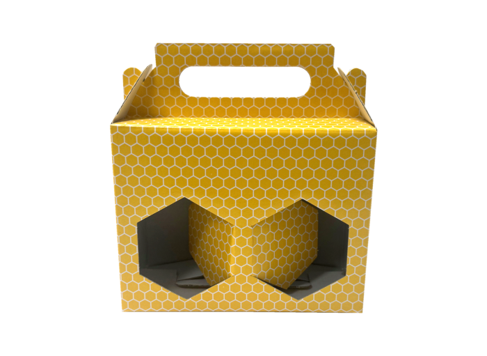 Solide et pratique pour une présentation soignées de vos pots de miel. Ce présentoir en carton jaune pour 2 pots de 385 ml est un indispensable pour valoriser vos produits de la ruche. Un emballage original et coloré pour un cadeau élégant !