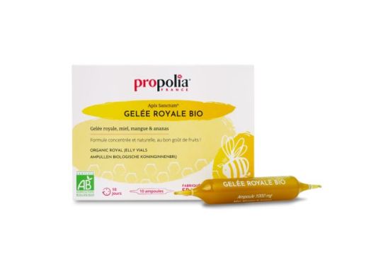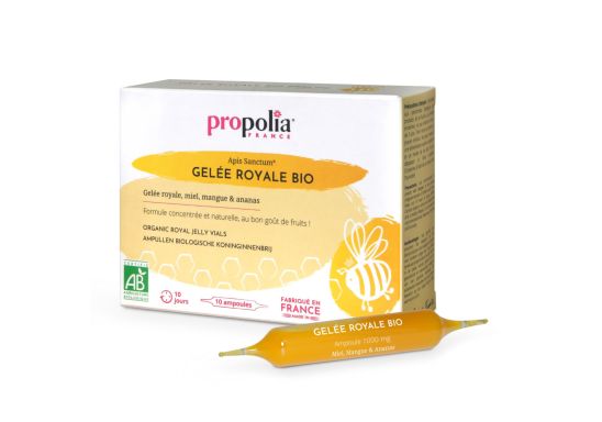 https://www.naturapi.com/propolia-gelee-royale-bio-immunite-energie-10-ampoules.html13175Gelée royale BIO en ampoules, la boite de 10 ampouleshttps://www.naturapi.com/media/catalog/product/p/r/propolia-gelee-royale-miel-mangue-ananas-ampoules.jpg1313EURInStock/Produits de la ruche/Apithérapie et Cosmétiques/Tonus et Bien-être/Produits de la ruche/Produits de la ruche/Apithérapie et Cosmétiques/Pollen et Gelée Royale/Catalogue saisonnier/Nouveautés14515625<p data-start="1443" data-end="1903">Offrez à votre organisme un véritable concentré de vitalité avec la <strong data-start="1511" data-end="1540">Gelée Royale Bio PROPOLIA</strong> !<br data-start="1542" data-end="1545">Nourriture exclusive de la reine des abeilles, la gelée royale est reconnue depuis des siècles pour ses propriétés <strong data-start="1660" data-end="1712">tonifiantes, revitalisantes et immunostimulantes</strong>.<br data-start="1713" data-end="1716">Cette formule 100% <strong data-start="1735" data-end="1772">naturelle et certifiée biologique</strong>, élaborée et fabriquée en <strong data-start="1799" data-end="1809">France</strong>, associe la richesse nutritionnelle de la gelée royale à un savoir-faire apicole authentique.</p>