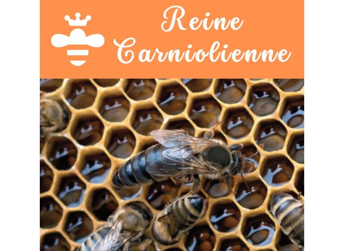Souche Apis Mellifera Carnica, grise à brun cuivré. Fécondée par des mâles Carnica. C'est une grande abeille, élancée, avec des poils très courts. Sélectionnée pour sa douceur et sa productivité, elle se développe rapidement au printemps. Elle est prolifique, excellente butineuse. C’est une abeille qui s’adapte à de nombreux climats même froids, et qui est assez résistante aux maladies. Elle vit longtemps, et s'adapte aux régions les plus rudes comme aux zones urbaines. Elle supporte très bien les grands froids, et consomme peu. Parce que personne n'est parfait, la carnica est encline à l’essaimage, il faut donc être vigilant en avril/mai quand la colonie se développe très vite. Par ailleurs si elle contrôle bien ses réserves, une situation de famine la rendra très pilleuse et agressive envers d'autres colonies.