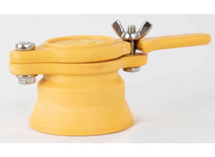 Robinet jaune pour vos maturateurs avec fermeture à clapet qui permet de couper rapidement l’écoulement de votre miel.