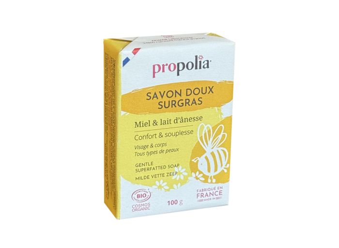 Savon doux surgras BIO miel et lait d'ânesse, Propolia, le savon de 100g