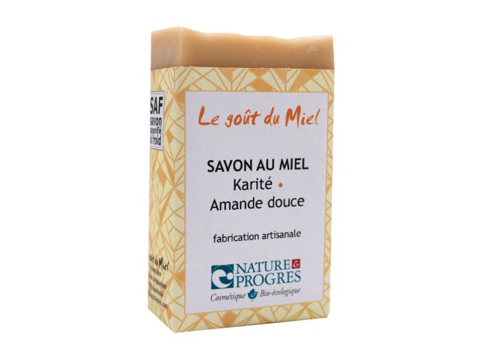 Savon solide artisanal amande douce (miel, karité) , le savon de 100g