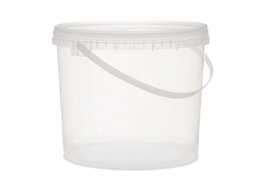 Seau "cristal" transparent en plastique, vendu avec couvercle sécurisé inviolable.