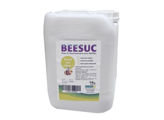Ce sirop est fabriqué exclusivement à base de betteraves sucrières ; il présente le gros avantage d'être exempt de maltose(sucre que l'abeille tolère mal), et contient beaucoup de fructose, un sucre bien plus digeste pour les butineuses. Le BEESUC est un sirop 3x33% (33% de saccharose, 33% de fructose, 33% de glucose) : l'intervase du saccharose en deux molécules de fructose et glucose est stoppée quand il reste 33% de saccharose. Voir plus.