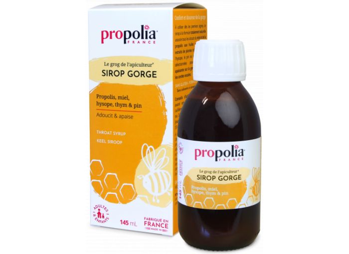 Sirop à la propolis, miel et plantes pour soulager les maux de gorge. Une formule élaborée pour adoucir la gorge et lui rendre son confort : le Miel, associé à l’Eucalyptus, à la Mauve et évidemment à la Propolis, est particulièrement efficace dans ce domaine. Un sirop qui, pris le matin, vous permettra d’aborder les journées hivernales en toute sérénité et en douceur grâce à son goût très agréable !