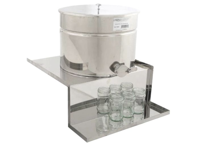 Bac-support en inox pour la mise en pot du miel. A mettre sous le maturateur et sur le bord d'une table