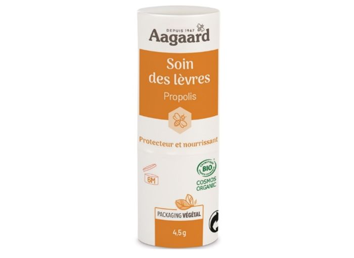 Le stick à lèvre AAGAARD à la propolis et au miel, issus de l’apiculture biologique hydrate et adoucit vos lèvres. Ce soin protecteur est idéal pour les lèvres sèches ou gercées.