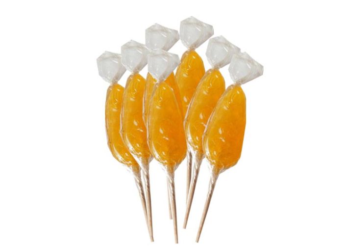 Bâtons en bois surmontés du bonbon au miel. Le sac de 300 sucettes. Sachet poids net : 3,45 kg