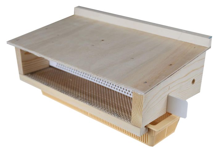 Cette trappe à pollen d'entrée en bois est idéale pour récolter le pollen. Vous pourrez la placer facilement et rapidement à l'entrée grâce à des crochets et récuperer votre pollen dans le tiroir en plastique situé en dessous.