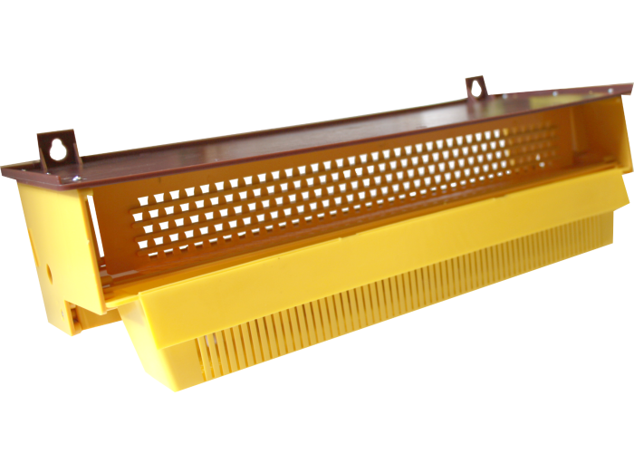Cette trappe à pollen fabriquée en PVC, spécialement conçue pour les ruches Dadant 10, est l'outil parfait pour récolter le pollen. Elle se place à l'entrée de la ruche (2 trous sur le dessus pour la fixation). En passant à travers le peigne, les abeilles feront tomber de leurs pattes le pollen qui se stockera dans le panier placé juste en-dessous. Deux trous sur les côtés permettent le passage des faux-bourdon.