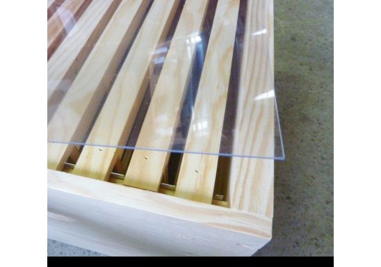 Oups ! Défaut de découpe... Ce couvre-cadres est prévu pour une ruche Dadant 10, mais ses dimensions devraient être 500x430mm, or suite à une petite erreur de calage machine, la largeur est de 415mm. Il ne manque pas grand chose, et si le couvre-cadres est bien centré sur la ruche, les 15mm manquants n'ont pas d'incidence et la ruche est bien fermée.