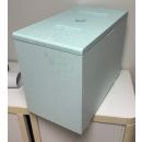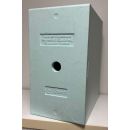 Ruchette neuve, modèle d'exposition présentant quelques traces, et dont le toit est percé au centre. L'ajout d'un morceau de grille à propolis peut permettre de maintenir l'aération sans perdre la ventilation.