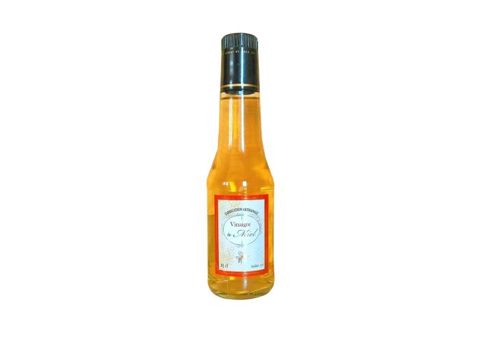 Un léger dépôt peut apparaitre mais n'altère en rien sa qualité. Vinaigre pur miel sans colorant, ni additifs, ni sulfites et non pasteurisé, produit à partir d'eau et de miel.